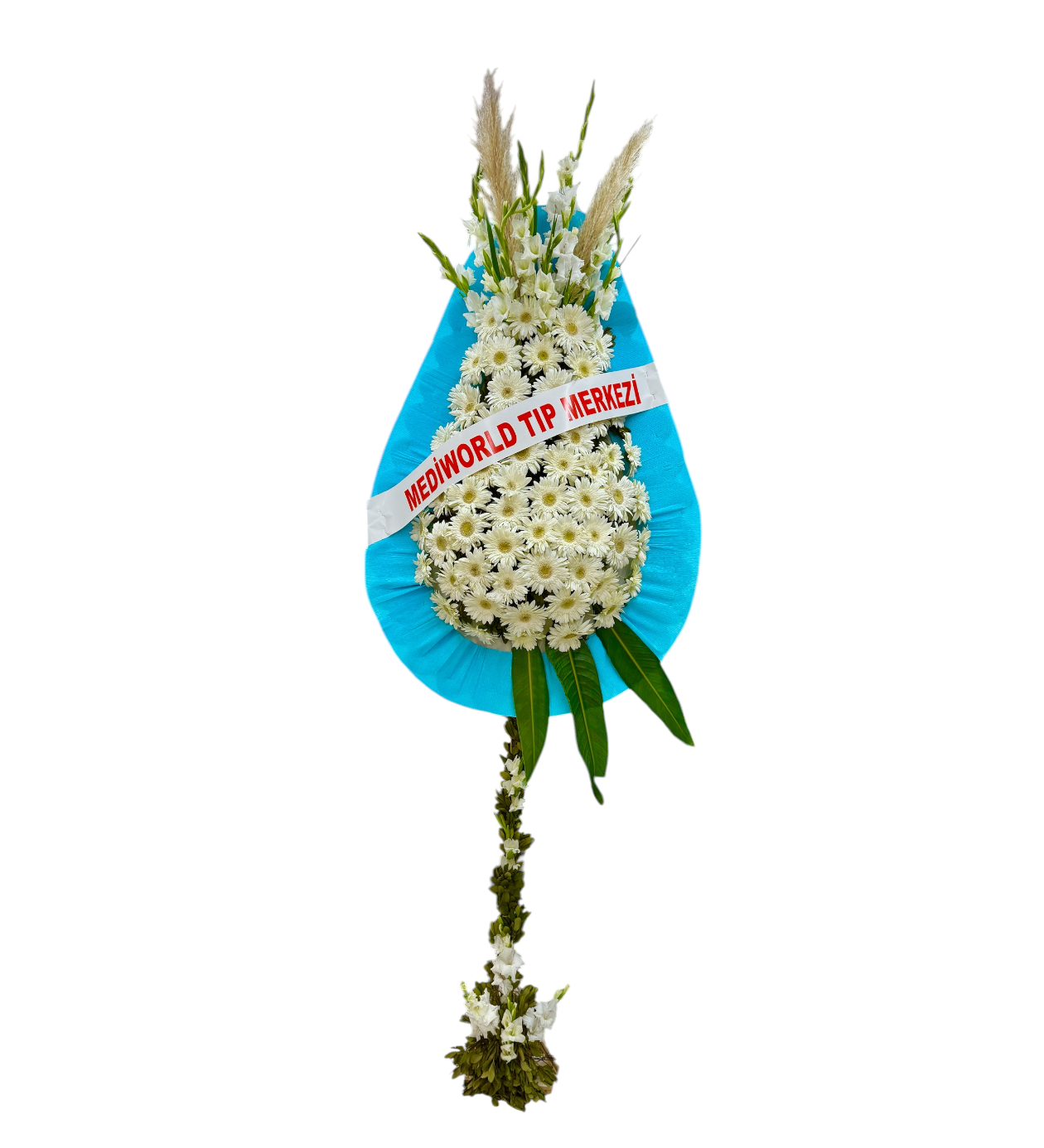 Yaklaşık 2 Metre Boyundaki Bu Şık Açılış Çelengi Tamamen Beyaz Gerberalar Ve Glayör Çiçekleriyle Hazırlanmıştır Üst Kısmında Pampas Ve Glayörlerle Zenginleştirilmiş Zarif Bir Görünüm Sunar Mavi grafon Kaplama Çelengin Modern Ve Göz Alıcı Tasarımını Ortaya Çıkarır Alt Bölümde Uzanan Beyaz Çiçekli Sarkıt Aranjmanı Bütünlüğü Tamamlar Açılış Düğün Nikah Ve Kurumsal Etkinliklerde Zarif Ve Anlamlı Bir Hediye Seçeneğidir