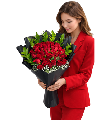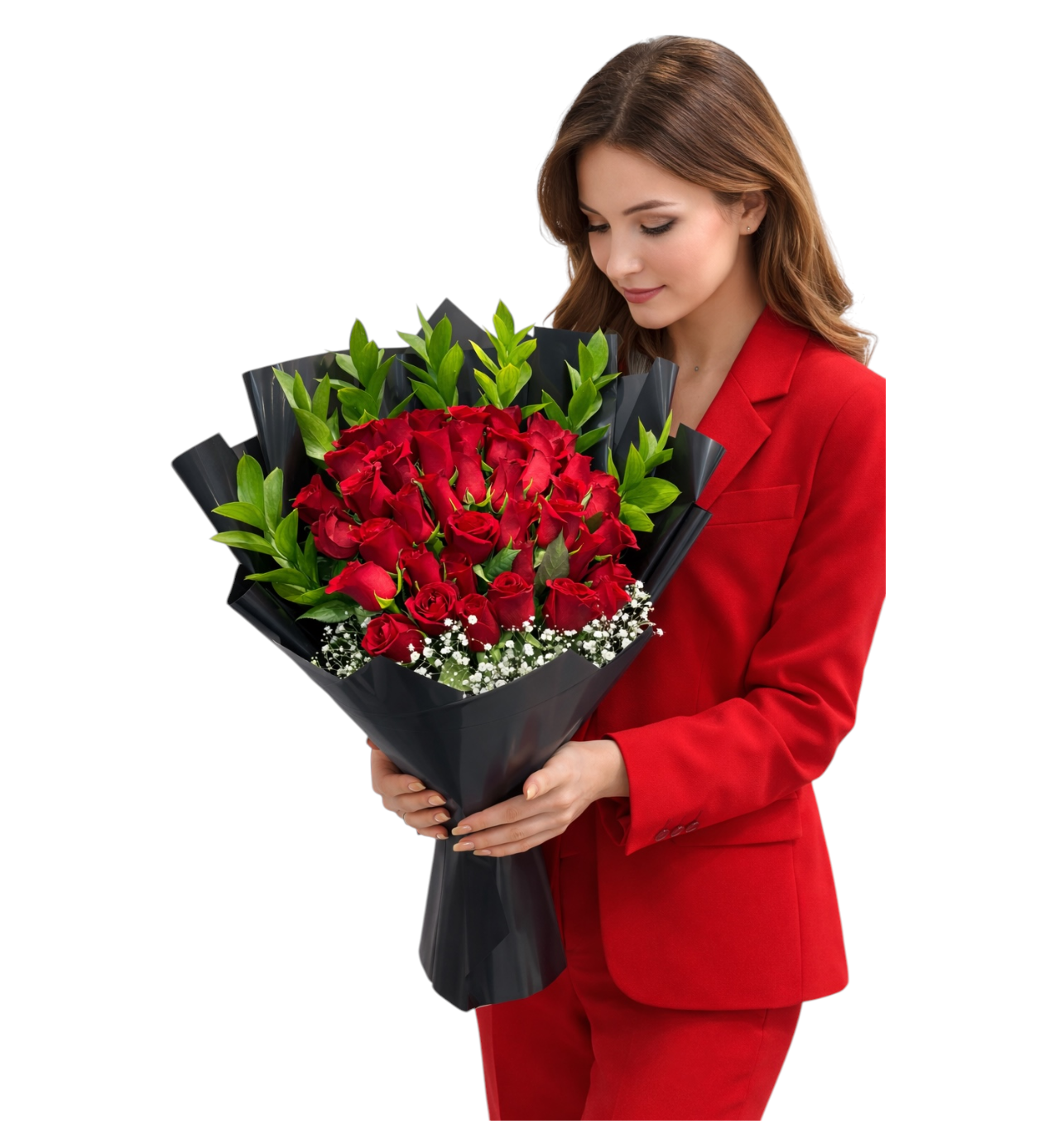 Tasarım Özellikleri : 41 adet kırmızı gül siyah şık ambalaj yeşil dekoratif yapraklar ve beyaz cipso detayları ile hazırlanmış olup hem klasik hem modern bir stil sunar