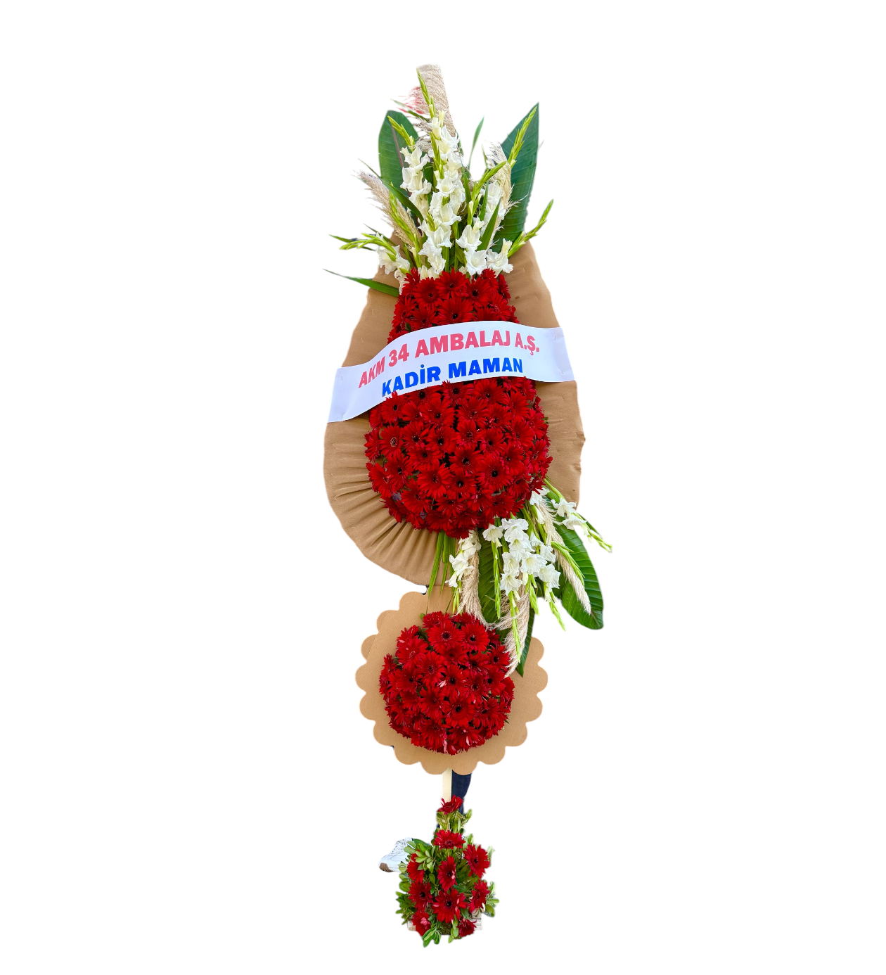 Yoğun kırmızı gerberalar, beyaz glayörler ve taze yeşilliklerle hazırlanmış şık ve dikkat çekici bir çelenktir. Canlı renkleriyle açılış, düğün, nikah ve kutlama organizasyonlarında zarif bir duruş sergiler. Gösterişli yapısı ve özenli süslemeleriyle dikkat çeken bir tasarımdır.