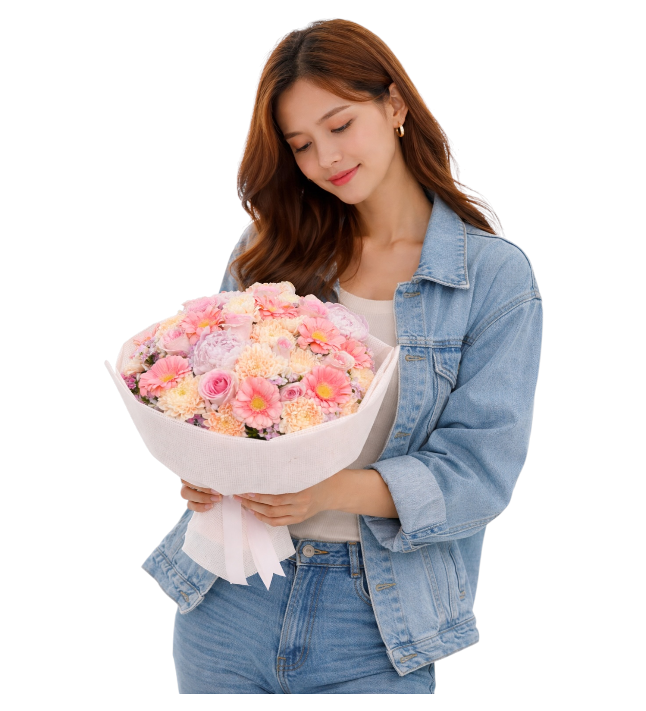Pudra tonlarının huzur veren uyumuyla hazırlanan bu özel buket, sevdiklerinize zarif ve anlamlı bir sürpriz sunmak için tasarlanmıştır Buket içerisinde yer alan pembe gerberalar, soft tonlu güller ve krem çiçekler romantik bir bütünlük oluşturur